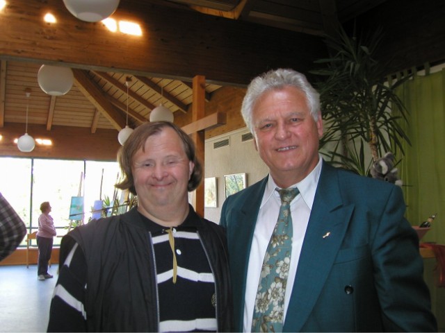 Pfarrer i.R. Stehle mit einem Gottesdienstbesucher