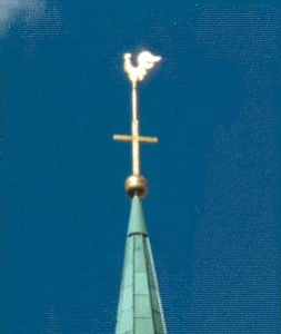 Der restaurierte Kirchturm : Turmhahn - Kreuz - Turmkugel - Kupferdach