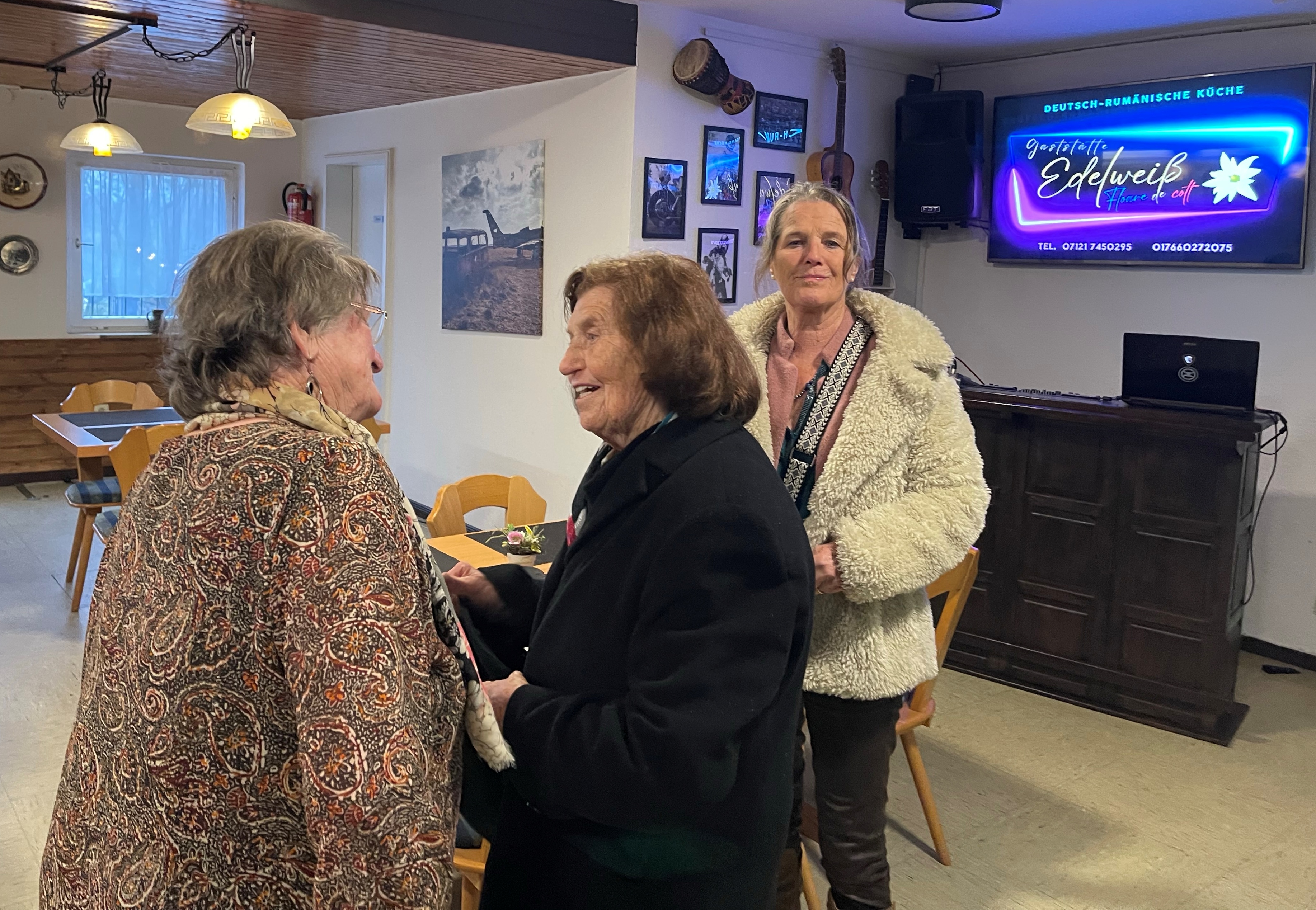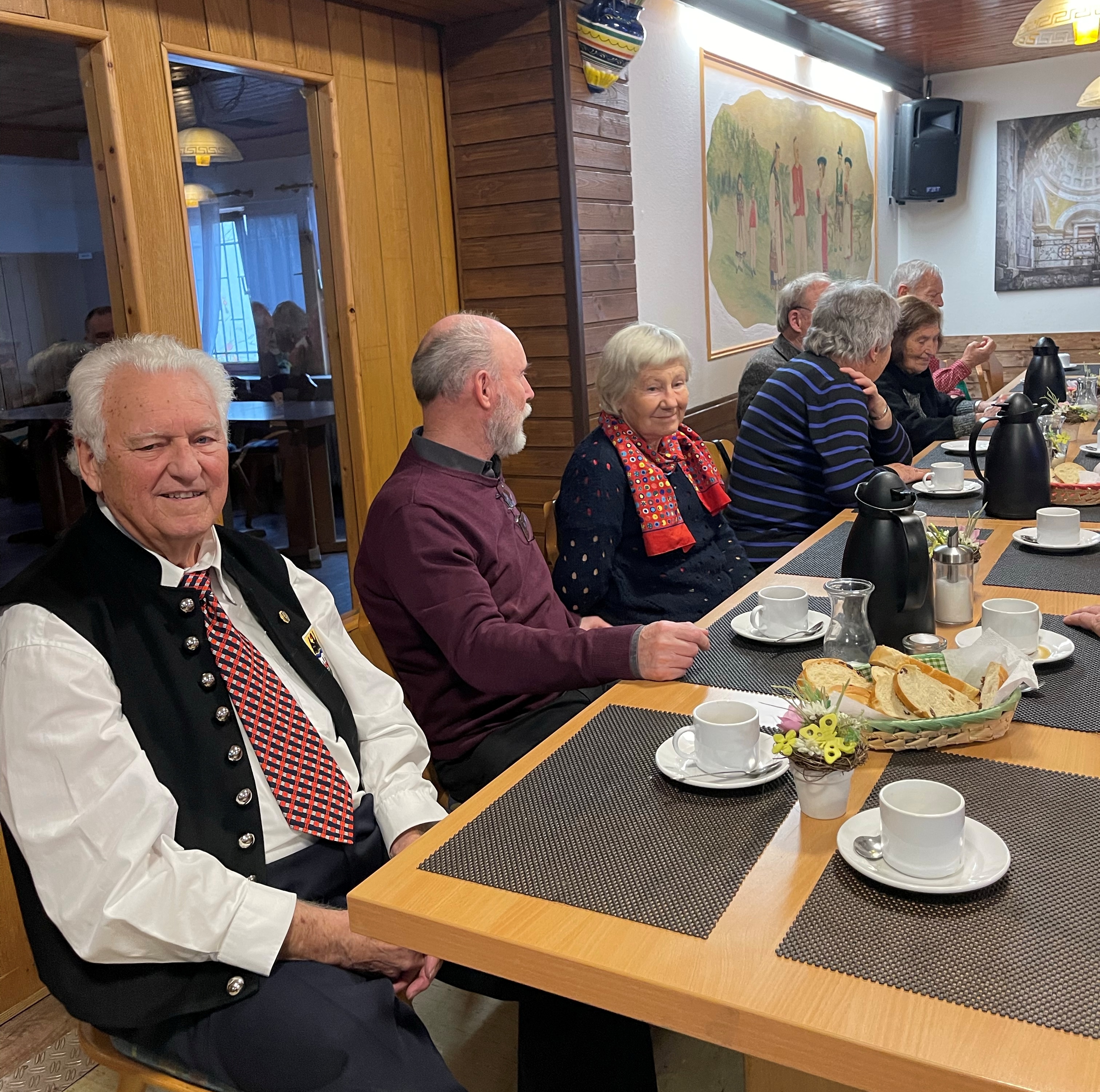 Michal Hild hatte den Landsleuten telefonisch angerufen. - So kammen 15 Frauen und Männer zum Treffen in der Gaststätte "Edelweiß" - am Rande des Friedhofs Römerschanze. Bei Kaffee und Kuchen gab es einen regen Austausch, der die Freude wiederspiegelt, sich wieder zu sehen. - Es gab viel zu erzählen im Rückblick auf die alte, VERLORENE, Heimat. Anschließend hielt uns der Pfarrersvetter, Jakob Stehle, eine kurze Andacht zum Thema FRIEDEN - und zwar anhand des "Aaronitschen Segens", in dem uns ja Sonntag für Sonntag Gottes Frieden zugesprochen wird. Dieser "Gottesfriede", der in Jesus Christus Mensch geworden ist, darf uns erfüllen und zu "Friedensstifter" machen. |
