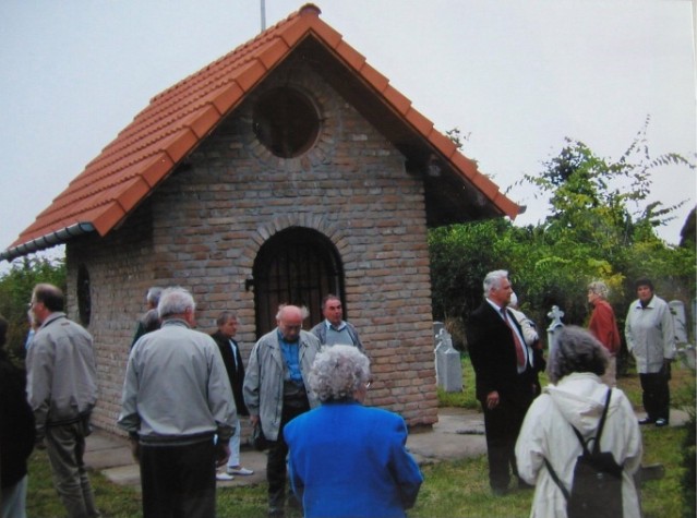 Pfarrer Stehle gibt Informationen zur Friedhofkapelle in Franzfeld