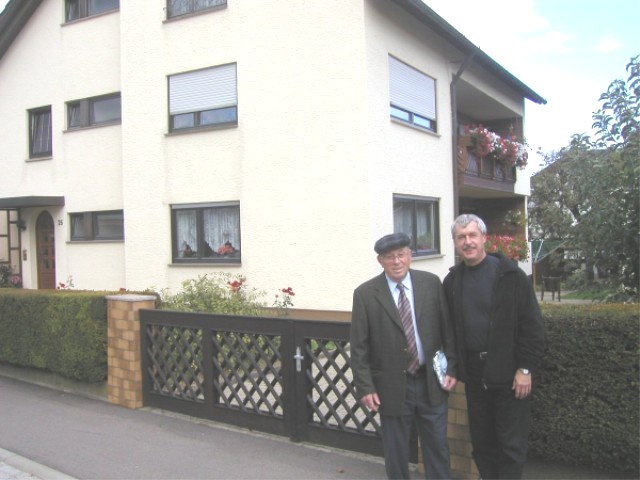 Landsmann Johannes Fissler vor seinem Haus in Tamm; neben ihm Erich Schurr.