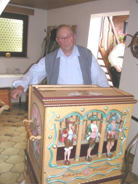 Landsmann Johann Fissler mit seiner selbstgebauten Drehorgel