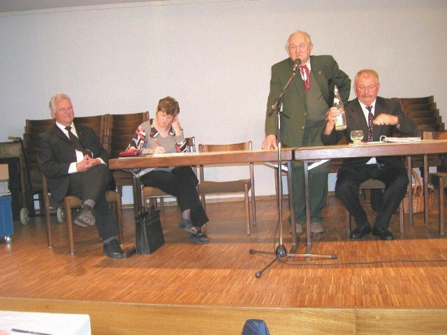 Von links nach rechts: Pfarrer Jakob Stehle Protokollführerin Frau Kohlschreiber Landsmann Franz Apfel Vorsitzender Peter Zimmermann