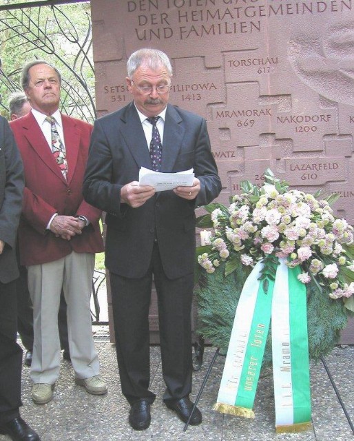 Landsmann, Peter Zimmermann, der Vorsitzende der HOG-Mramorak, hielt die Ansprache zum Totengedenken - mit der Kranzniederlegung.