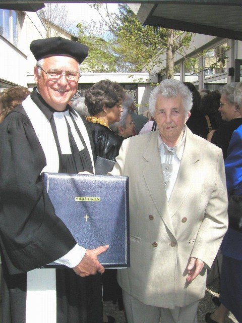 Unsere Landsmännin, Frau Magdalena Berg (geb. Kemle) aus 85586 Grub hat in mühsamer Kleinarbeit Totenanzeigen von Landsleuten gesammelt und in diesem Buch zusammengefaßt. Bei der Gedenkfeier schenkte sie dieses Buch unserem Pfarrersvetter Jakob Stehle. |