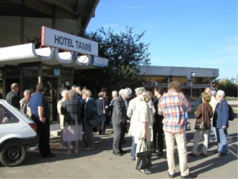 Haupteingang zu unserem Hotel TAMISH in Pancevo. - Aufbruch am Sonntagvormittag (12.September 2004 -14.Sonntag nach Trinitatis) zur Fahrt nach Franzfeld, um die Kapelle auf dem Friedhof einzuweihen.