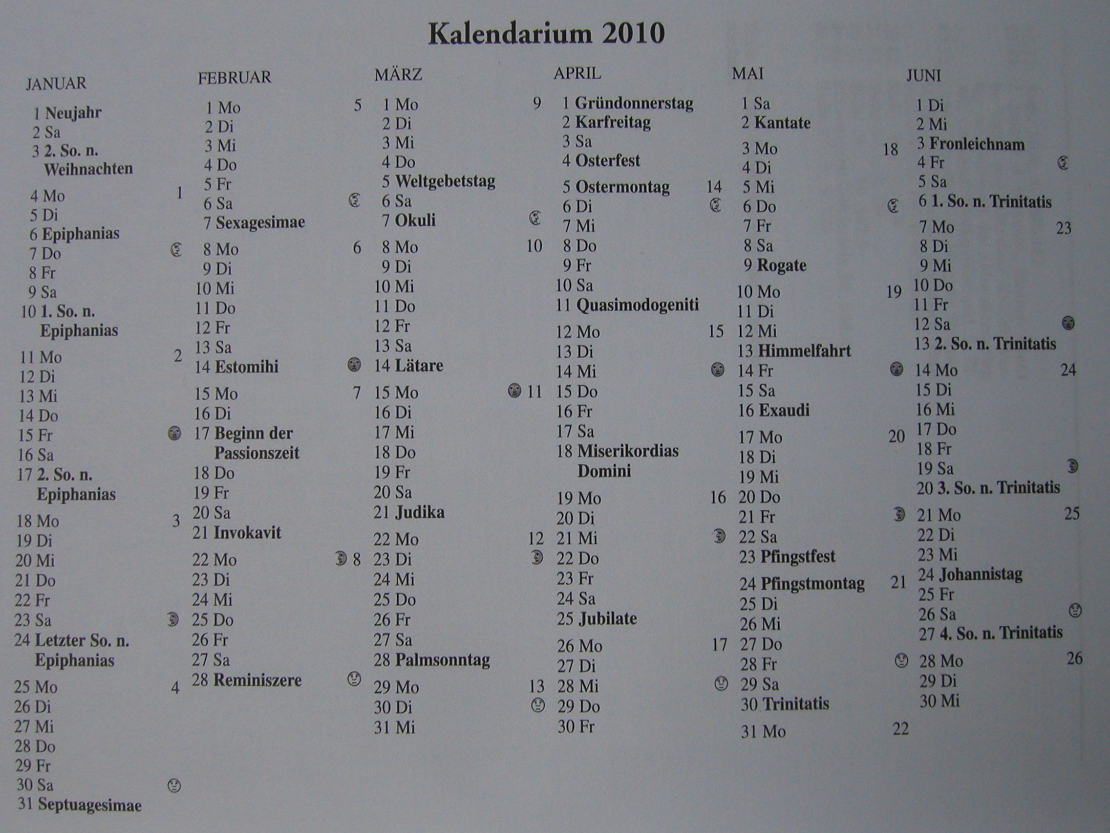 Kalendarium für das Jahr 2010