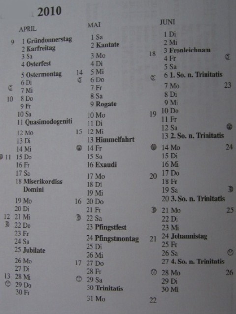 Kalendarium für das Jahr 2010
