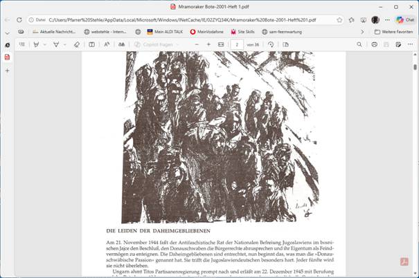 Hinweis: Jahr 2026 Liebe Landsleute, Aus finanziellen Gründen ist es uns nach dem Tod von Franz Apfel nicht mehr möglich, den "MRAMORAKER BOTEN" zu drucken und an alle Landsleute zu versenden. Sie werden aber weiterhin voll in unserer WEBSEITE informiert. INTERNETSEITE unserer INFORMATIONEN Wir danken unserem Pfarrersvetter, Jakob Stehle, für die Betreuung unserer Internet-Präsenz. - Wir sind außerdem auf der Suche nach einem Landsmann/Frau, die diese Aufgabe in Zukunft übernehmen könnte! |