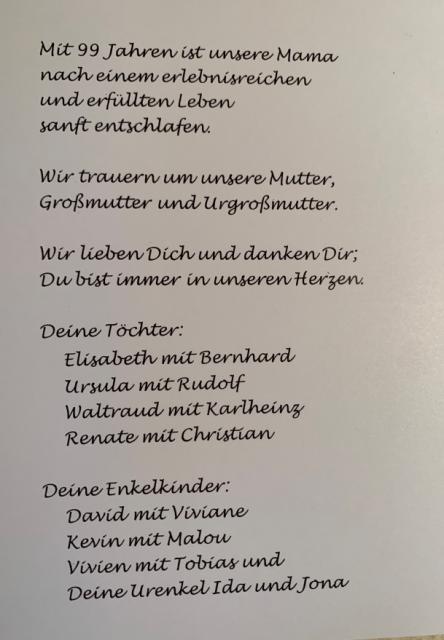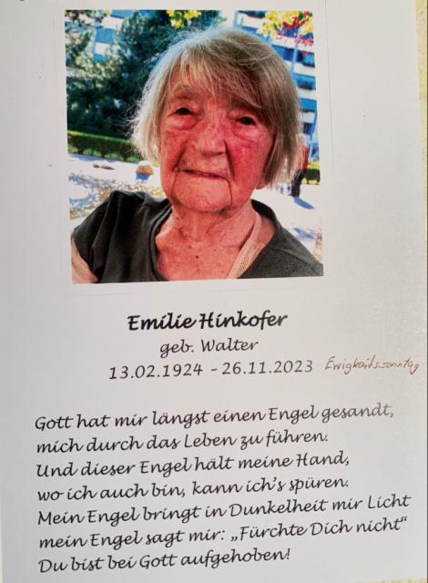 Unsere Landsmännin, Emili Hinkofer, ist mit 99 Jahren´ verstorben: