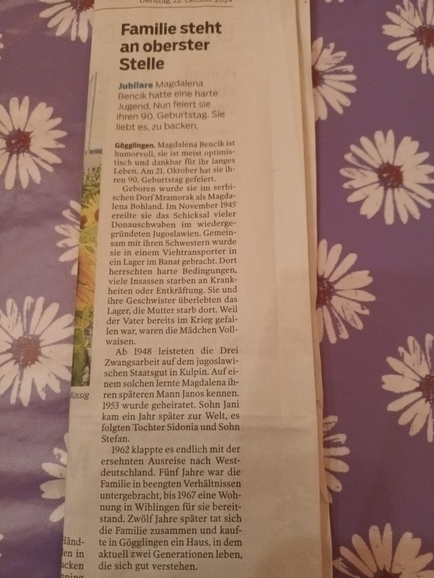 "In Werschetz lernten sich meine Eltern kennen und heirateten auch dort. Meine Mutter ist eine Enkelin von Johanna Stehle aus Mramorak."
