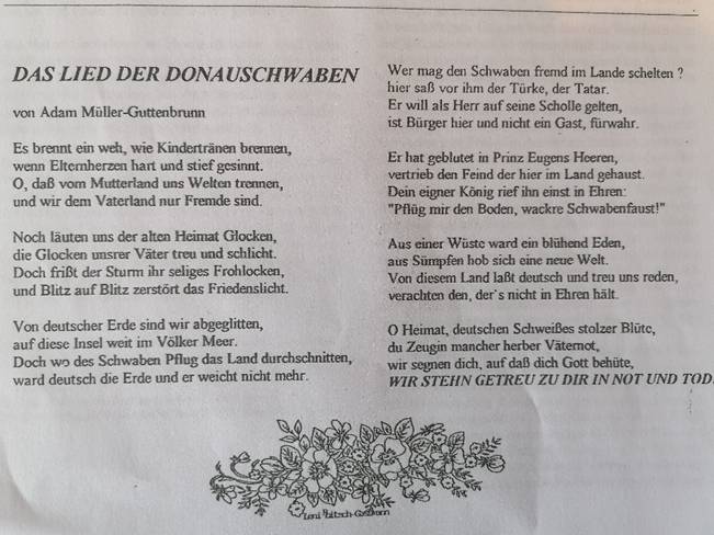 Denken Sie bitte daran: Solange es uns Donauschwaben gibt, ist niemand vergessen und allein.