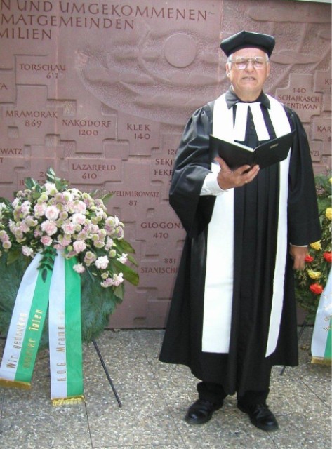 Im Lichthof - Haus der Donauschwaben Pfarrer Jakob Stehle bei seiner Ansprache Gedenkworte |