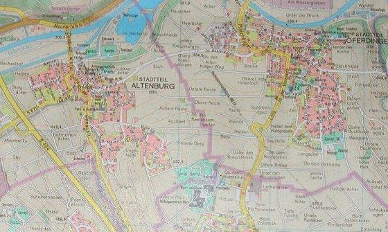 Die Landkarte vom Neckarteil, an dem Oferdingen liegt.