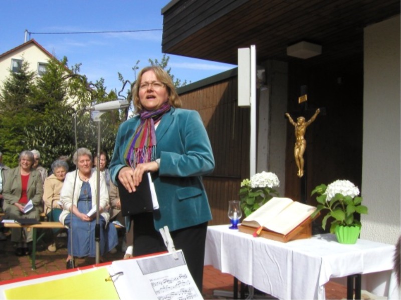 Pfarrerin Palm begrüßt die Gottesdienstteilnehmer/innen