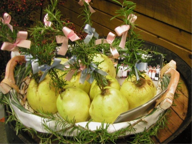 Quitten mit Kirchweihsträußchen - Geschenke für die prominenten Gäste